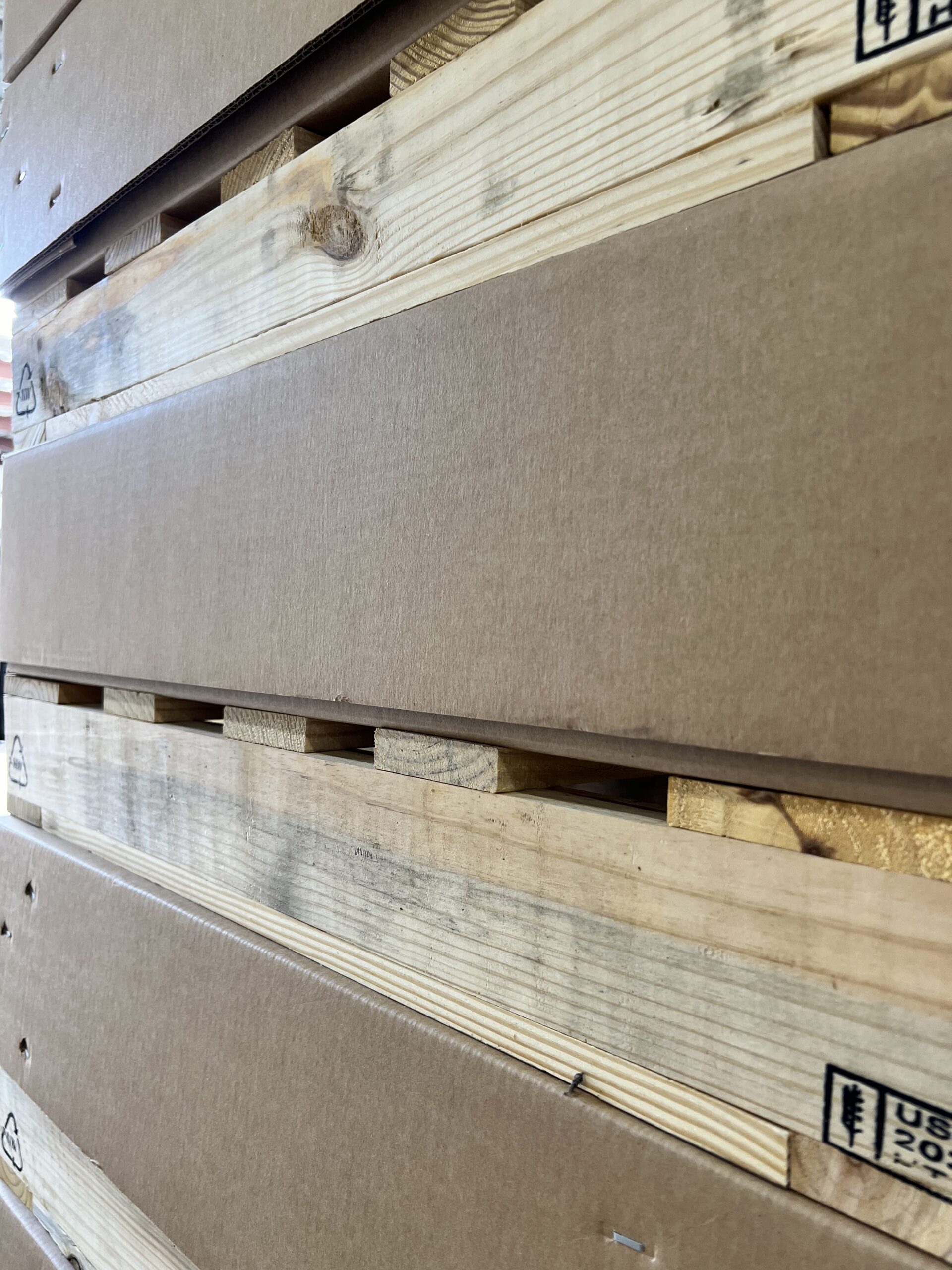 As part of our sustainable efforts, we source raw materials from recyclable resources. Our corrugated fiber and lumber use natural and renewable resources to reduce environmental impact. In addition, we recycle all corrugated scraps and waste during the box conversion process and use them to create more corrugated sheets.